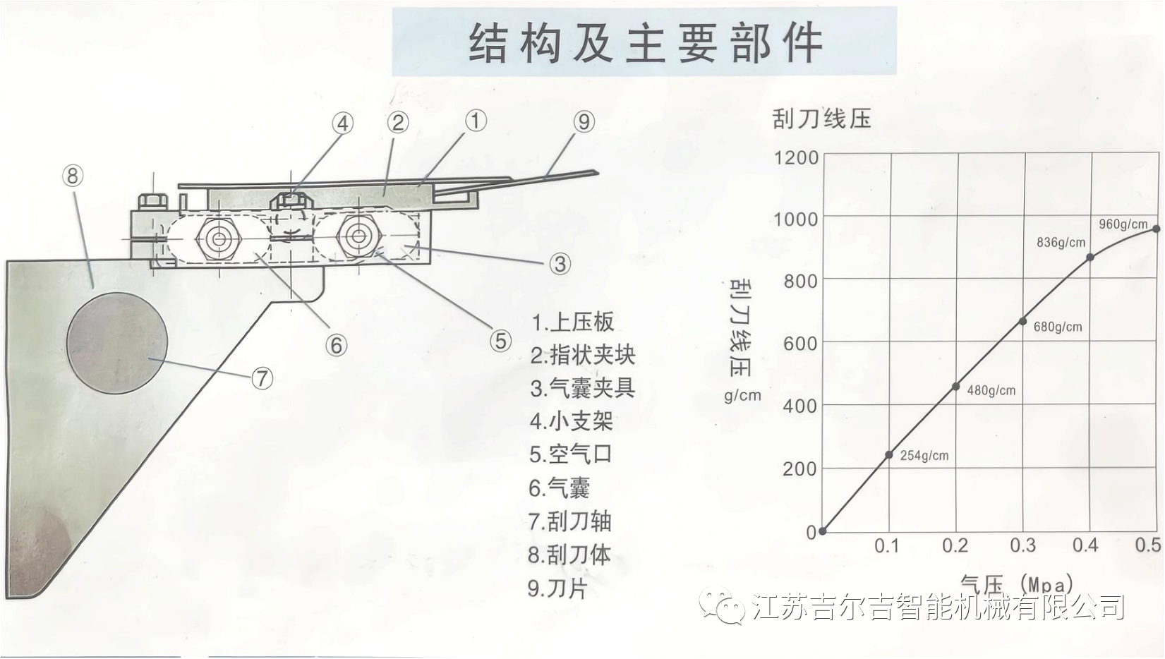 刮刀片使用壽命提高。 輥面磨損減少,不會出現刮痕、刮傷等情況。 輥子的運轉負載降低。 DST夾具類的一些輔件使用壽命也相對提升。 線壓力過大,會導致刮刀片磨損過快,刮刀片的使用壽命嚴重縮水。 線壓力過大,會導致輥面磨損,有刮痕、刮傷等一些問題的發生。 線壓力過大,會導致輥子的運轉負載增加。 線壓力過大,刮刀夾具的上板會發生變形或斷裂,影響使用效果。 線壓力過大,負載過大,會導致氣囊的使用壽命縮短。 關于江蘇吉爾吉: 江蘇吉爾吉智能機械有限公司是一家集研發;生產制造;銷售為一體的高新技術型企業,公司現擁有各項發明專利15項,10項刮刀標準著作權,現如今在核心技術上不斷實現突破,掌握更多具有自主知識產權的關鍵技術。公司產品主要以造紙、鋼鐵、皮革、印刷、紡織等領域的刮刀設計制造、為各行業提供10萬+刮刀系統解決方案。 公司主營產品有DST抽拉式刮刀系統、DST移動單刮刀雙刮刀系統、DST水槽雙刮刀系統、DST起皺刮刀系統、DST油壓起皺刮刀系統等,刮刀夾具有雙氣囊夾具、自重式夾具、抽拉式夾具等,刮刀片有環氧樹脂玻璃纖維刮刀片、碳纖維刮刀片、合金陶瓷刮刀片、磷銅刮刀片、不銹鋼刮刀片、藍鋼刮刀片、高分子刮刀片、溢流板等。公司同時經營引紙割刀、斷紙刀、圓刀、舊刀返修刮刀軸承、刮刀配件等相關業務。